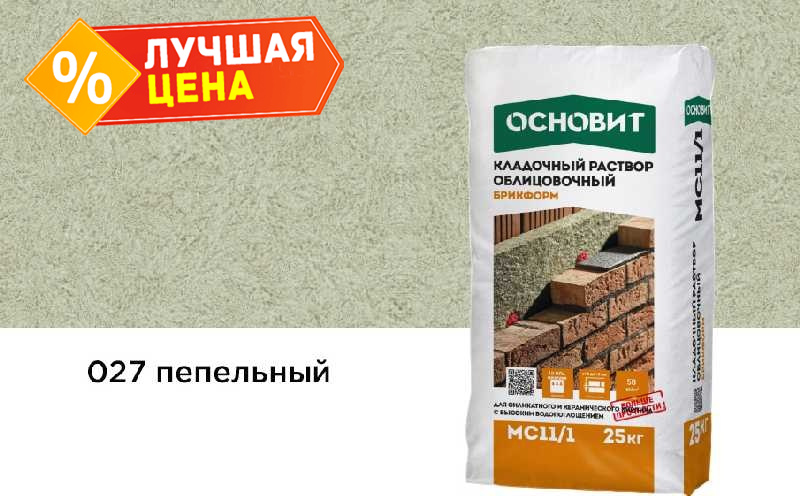 Цветной кладочный раствор ОСНОВИТ БРИКФОРМ МС11/1 пепельный 027, 25 кг