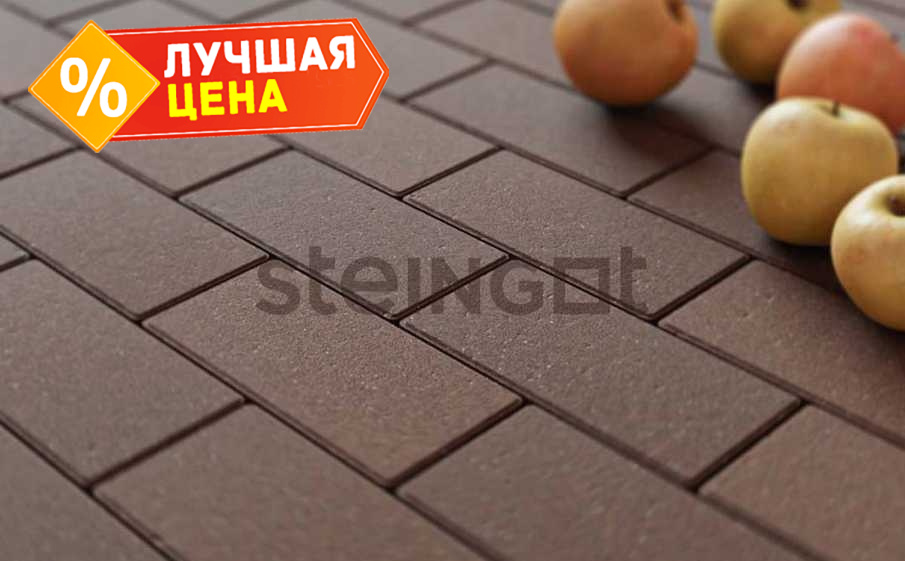 Плитка тротуарная Steingot Моно, Прямоугольник, фаска 1,5х1,5, темно-коричневый, 200х100х60 мм
