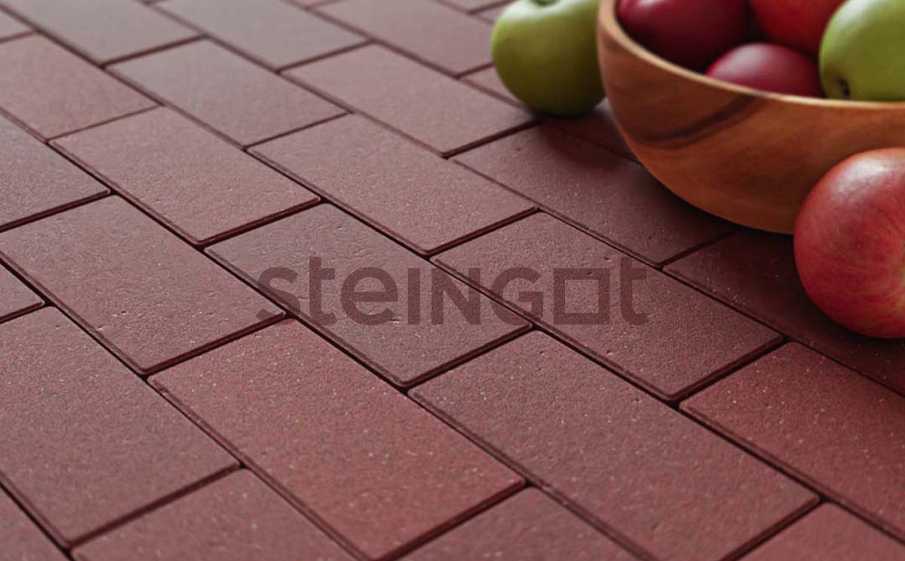 Плитка тротуарная Steingot Моно, Прямоугольник, фаска 1,5х1,5, темно-красный, 200х100х60 мм